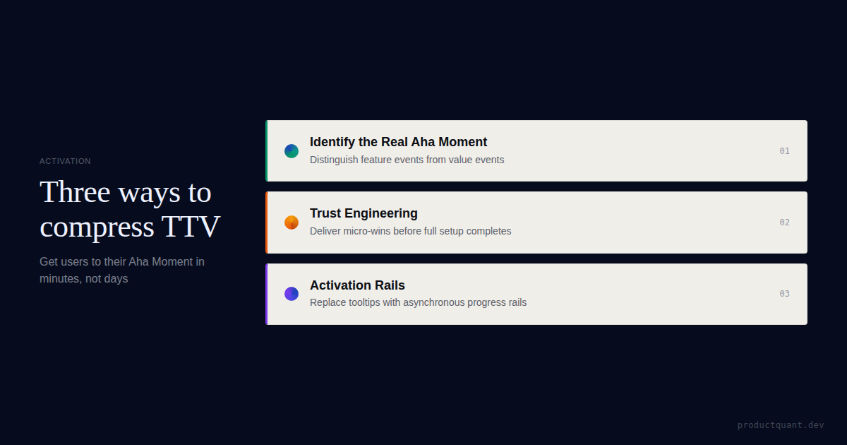 Time-to-first-value is a proxy for activation, not a substitute. The 5-minute rule forces product teams to be specific about what "value" means and when a user has actually experienced it.
