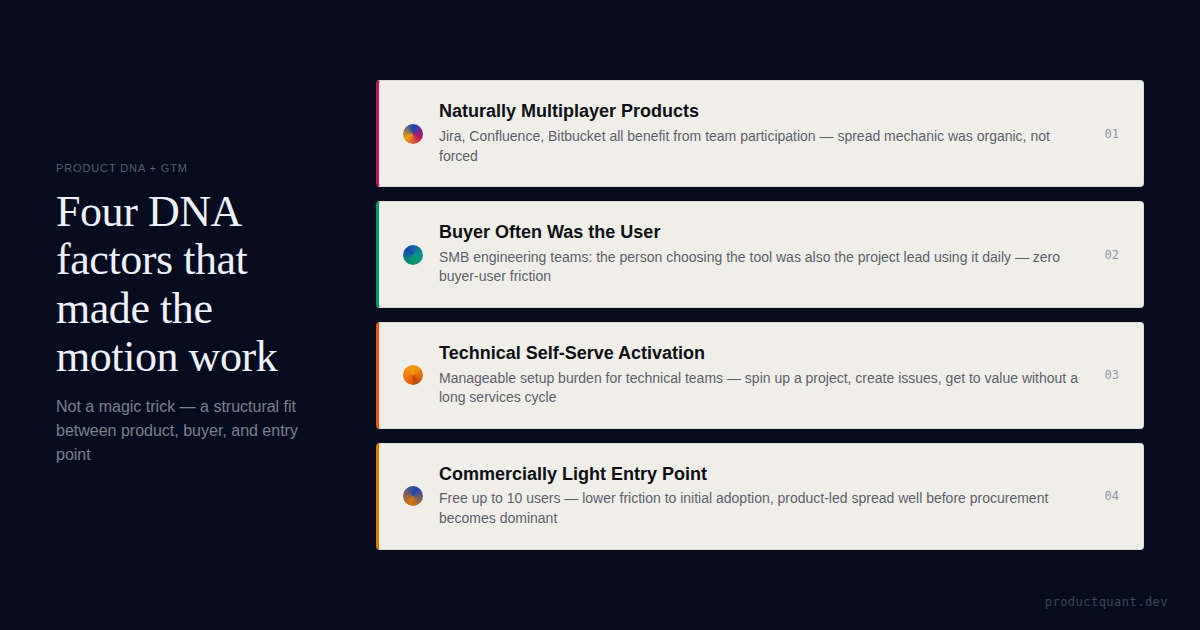 Atlassian did not prove that sales is unnecessary. It showed how long a low-friction, team-led, buyer-user-aligned product can stretch a lighter commercial motion.