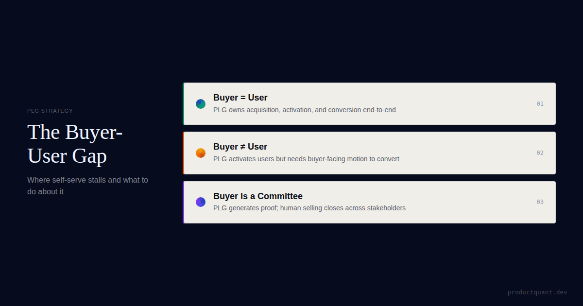 When the user who gets value is not the buyer, product-led growth often needs sales assist, buyer artifacts, and a different conversion design.