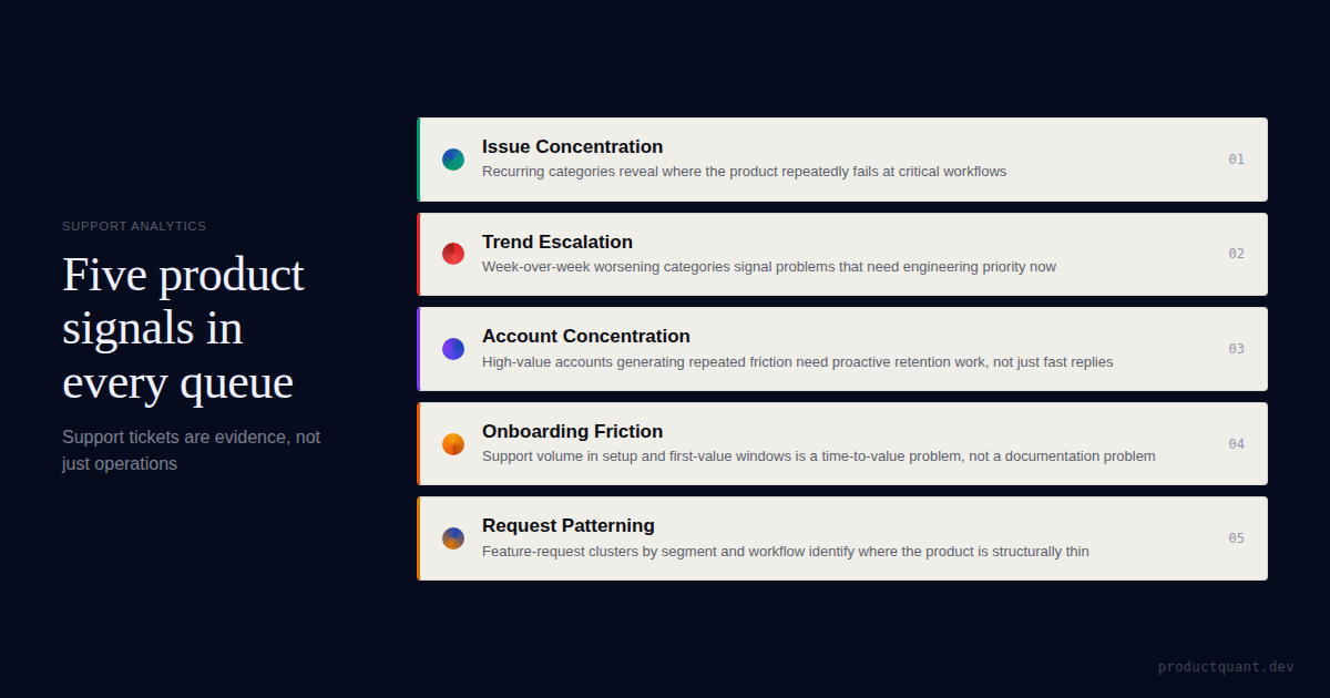 Your support queue is not just support ops data. A Zendesk analytics layer can surface recurring friction, onboarding bottlenecks, account risk, and roadmap pressure before the team defaults back to anecdote.