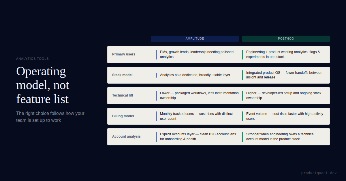 A practical comparison for B2B SaaS teams deciding between a more packaged analytics layer and a more integrated product OS with flags and experimentation.