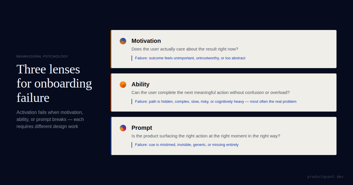 The BJ Fogg model gives a better way to diagnose onboarding: is the user unmotivated, unable to complete the next step, or simply not being prompted properly?