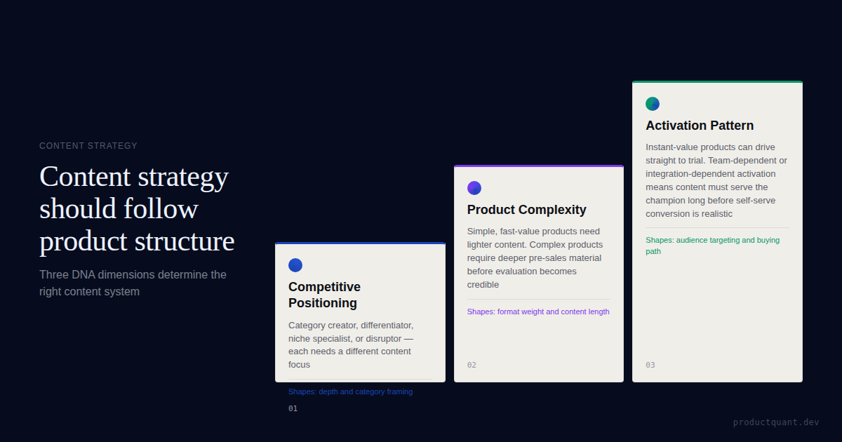 Content strategy should come from the product’s positioning, complexity, and activation pattern instead of default SaaS marketing templates.