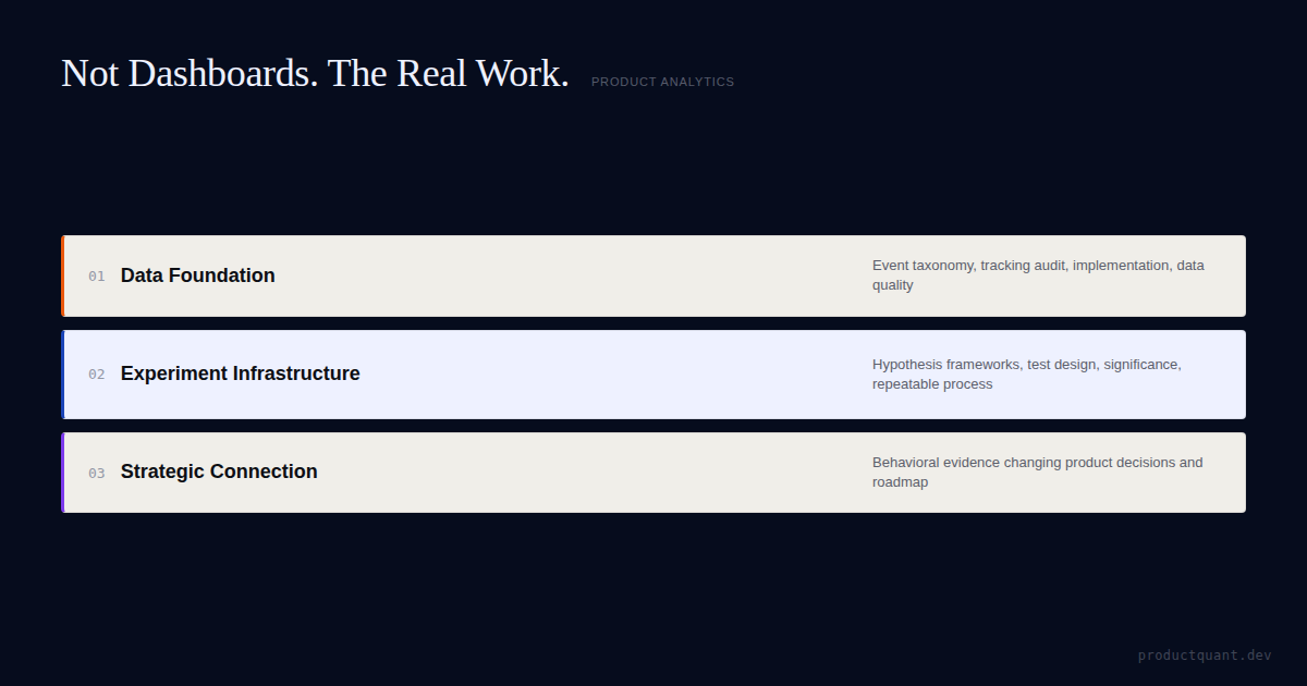 Discover what a product analytics consultant actually does — beyond dashboards. Event taxonomy, experiment design, growth systems, and when to hire vs. build in-house.