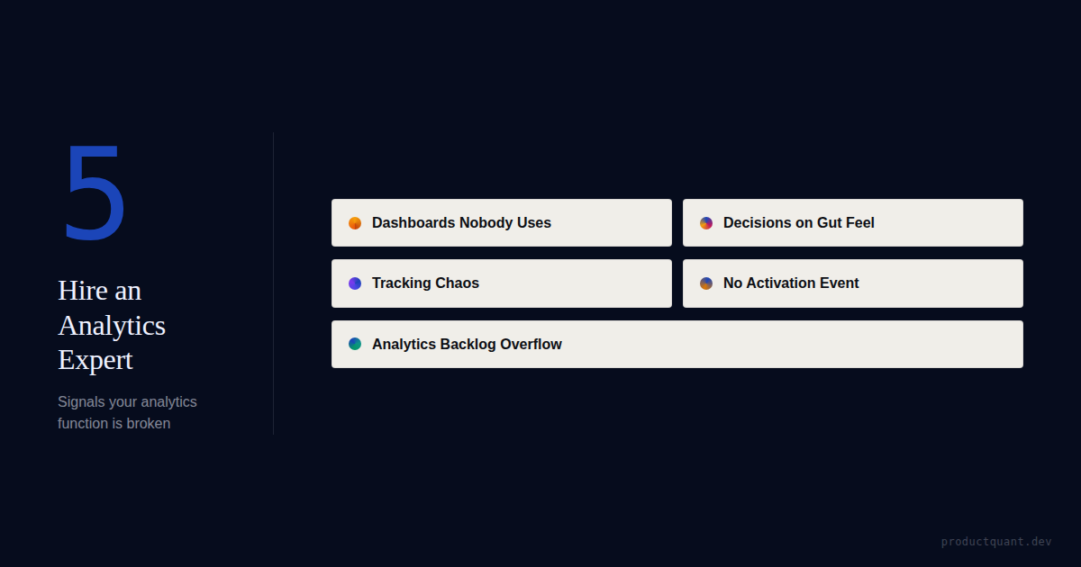 Dashboards nobody reads. Decisions made on gut feel. Tracking that nobody owns. Here's how to know you need a product analytics expert — and how to hire the right one.